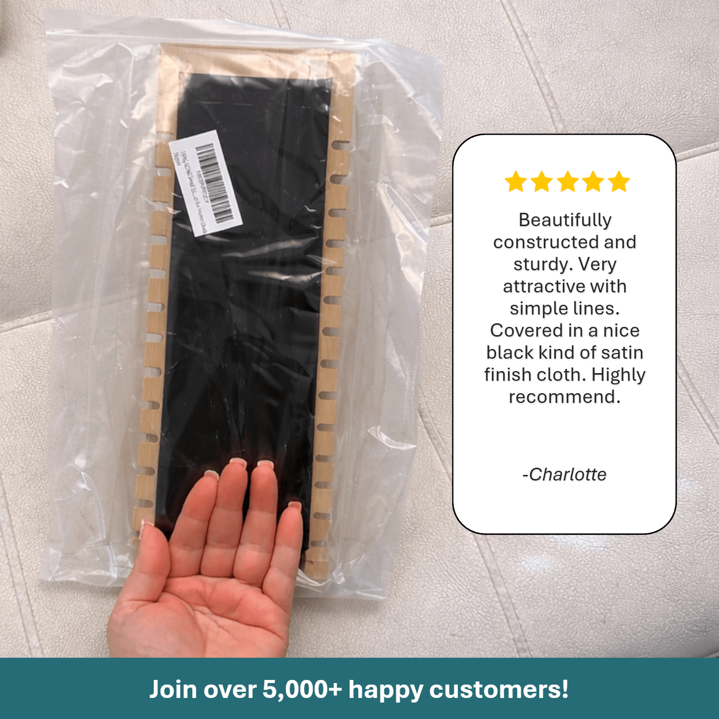 It’s crafted with bamboo wood and premium leather for a sleek, modern finish that looks elegant on any vanity or retail counter. The materials are durable and built for everyday use.
