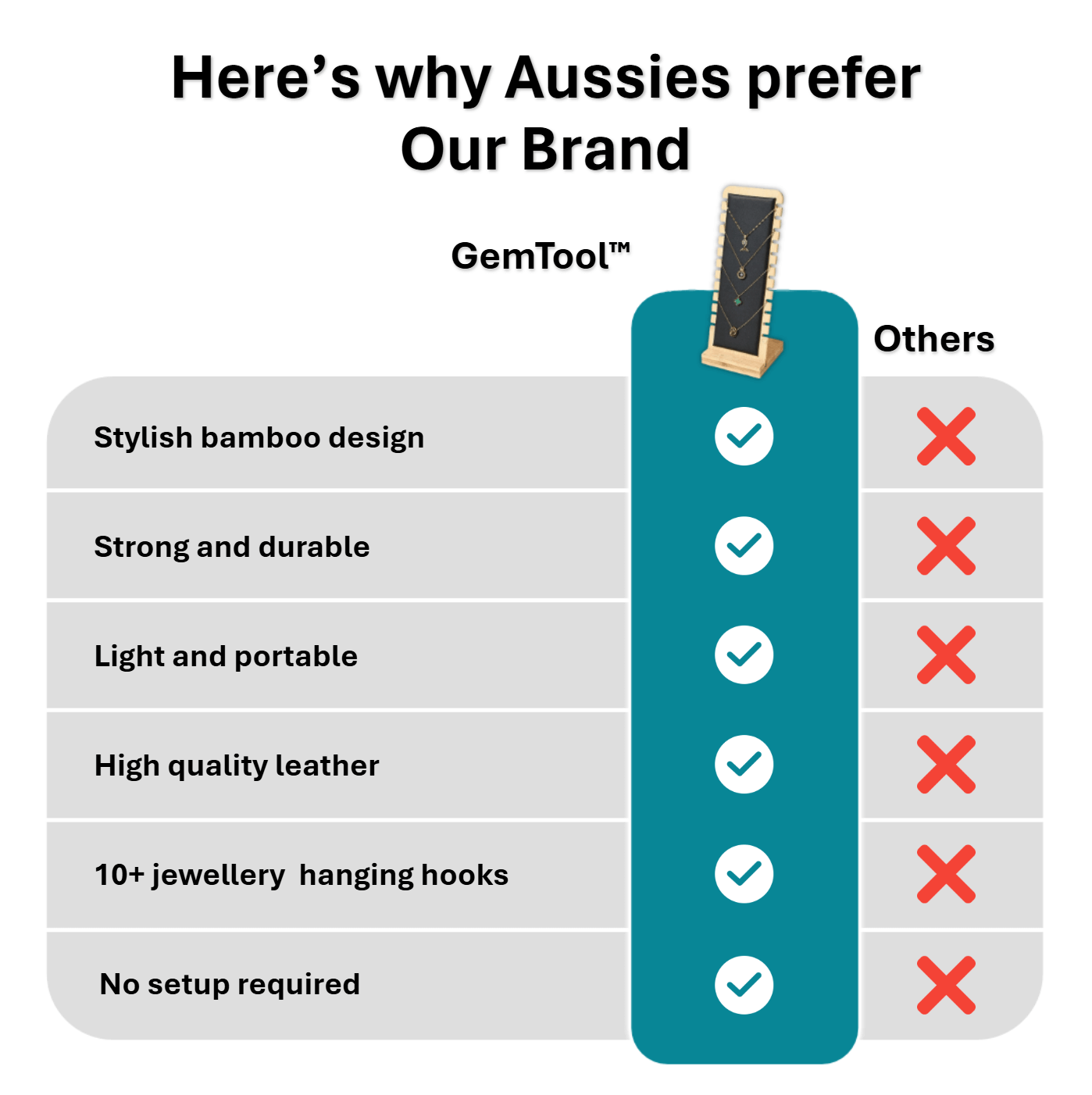 Our GemTool™ Jewellery Display Stand transforms messy drawers into an organised display. Its tall wooden design prevents tangling, damage or loss of jewellery, and is made from an elegant, stylish design.